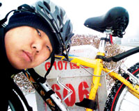 由于沒有買到回老家鄭州的火車票,北航的大二學生高富松決定騎自行車回家。他1月22日從北京出發,歷時7天抵家,目睹了冰雪對沿途居民的影響。昨天,高富松興奮地告訴記者,雖然路上經歷了不少困難,但堅持到最后的精神讓自己平安到家,而且這次經歷也考驗了自己的耐力。