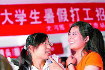 雖然勤工儉學不適用于《勞動合同法》,但不少公司卻很喜歡招用在校學生為他們打工。易博說:“招聘在校大學生作為促銷員,一是因為他們人群集中,幾天時間就能招到一二百人;二是在校大學生有熱情,社會經驗比較簡單,不會提額外要求給企業添麻煩。”
