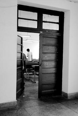 在該教學(xué)樓門(mén)口的水泥路面上,記者發(fā)現(xiàn)有幾處新鮮的洗刷痕跡,和周邊路面的顏色形成明顯的對(duì)比。離該教學(xué)樓20余米處就是數(shù)學(xué)學(xué)院辦公樓,兩樓之間隔著一片草坪。事發(fā)當(dāng)時(shí),有目擊者看到喬榮捂著左肩,沖進(jìn)學(xué)院1樓辦公室,當(dāng)時(shí)在門(mén)口的路面上留下血跡。昨天中午,記者發(fā)現(xiàn)該辦公樓門(mén)口的水泥地面和通往1樓辦公室的通道上都有幾處明顯的洗刷痕跡。辦公室沒(méi)人在,門(mén)緊鎖著。