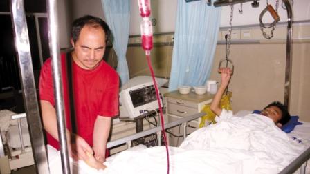 他是北川一中高一學生,地震時被倒塌的教學樓壓住了雙腿,一壓就是16個小時。被送到廣州時,他的雙腿組織基本壞死,壞死的肌肉分泌出毒素,導致他出現(xiàn)急性腎功能衰竭、中毒性心肌炎、中毒性腦病、急性胰腺炎等并發(fā)癥。