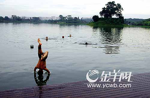 一位剛從水里鉆出來的學生證實了上述推斷:“不少市民傍晚會專門開車來這里游泳,周末岸邊都停滿了外面來的小車。”他說,學校的游泳池開放時間有限制,而且要收費,自認為“水性好”的同學都樂意到中心湖游泳,“只要不下雨,這里的‘人氣’都很旺”。