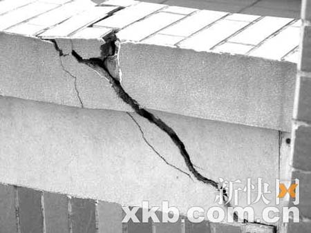 記者調查了解到,全校幾乎所有的建筑均出現了不同程度的沉降現象,并導致許多墻面破裂。