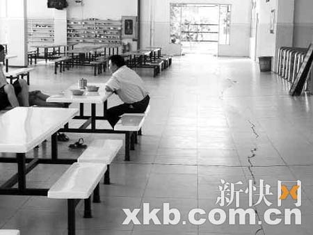 食堂地面出現長長裂縫。李詠祁/攝