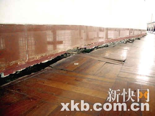 ■該校籃球館地面下沉情況非常嚴重。 本版攝影:王華平