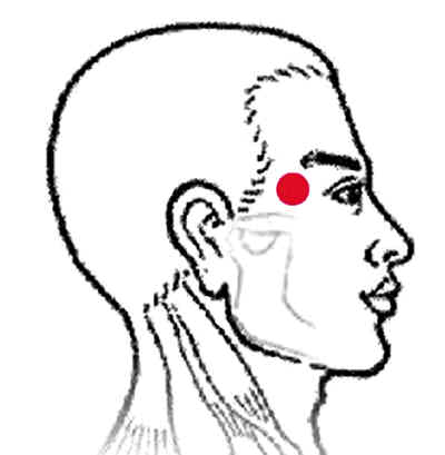 圖②按揉太陽穴,刮上眼眶