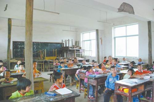 近日部分學生反映,今秋開學后西安市藍田縣湯峪鎮張坡村小學學生仍在地震損壞布滿支撐立柱的教室中上課,9月2日記者在藍田縣教育局了解情況時,該局計財科負責人樊繼剛老師對記者說:“藍田縣地震損壞校舍修復問題有望9月底前得到解決,希望家長理解。”