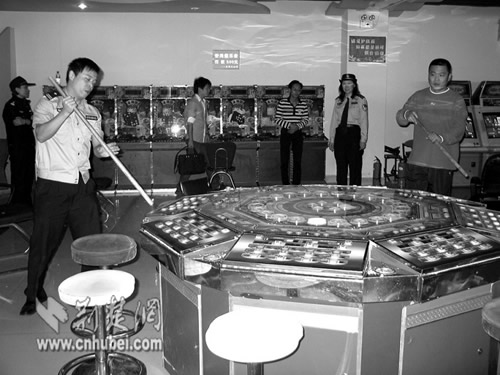 1時(shí)20分,在“獅城網(wǎng)吧”一樓,兩名男子正在賭博機(jī)上押注,民警沖進(jìn)去,將其控制,并將里面的管理人員控制住。隨后,珞獅南路、華師大東門(mén)、石牌嶺的4家窩點(diǎn)也先后被搗毀。