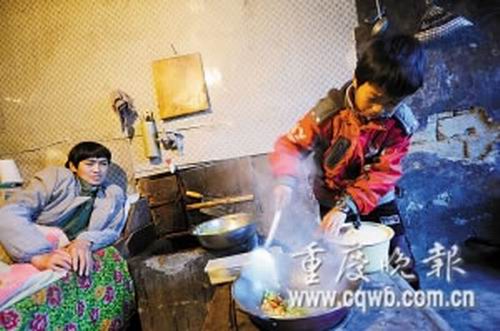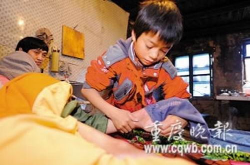彭小林是城口縣河魚小學(xué)6年級學(xué)生,他1歲時(shí),家里的頂梁柱爸爸在山西煤窯挖煤時(shí)受傷,從此腰部以下全無知覺。5歲時(shí),媽媽和爸爸離婚,他便開始撐起這個(gè)家。