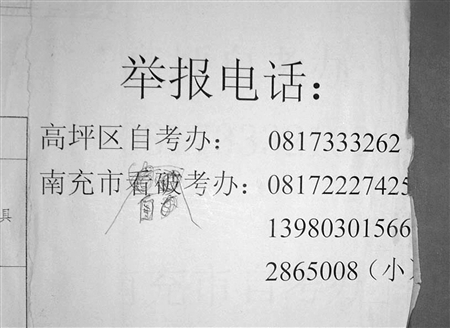 記者查了南充市黨政機關電話號碼簿,沒有發現這單位。記者按公布的投訴電話撥過去,被告知“我們不是看破考辦”。高坪區自考辦在教育局辦公大樓二樓,記者又趕到高坪區自考辦。“‘南充市看破考辦’根本不存在,怎么會有這個單位?”自考辦干部陳老師說。