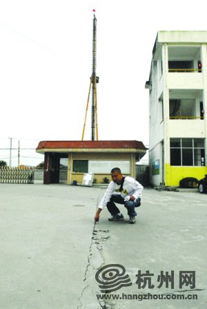 學校地面開裂,不遠處就是打樁機。 攝影 曉春