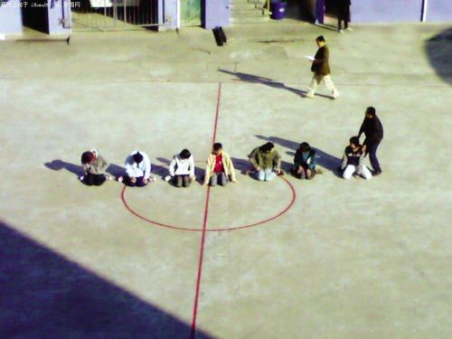 10日,一網友在福州某網上論壇發了一個“氣憤!學校如此體罰學生”的帖子,大意是:9日上午,福州市某技工學校的7名學生,在該校操場上被老師罰“跪”。該帖還配發了兩張照片,7名學生模樣的人低頭跪坐在操場上。