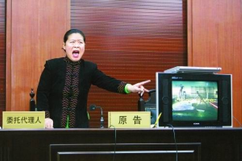 法庭上,高帥的母親向法官出示錄像證據。