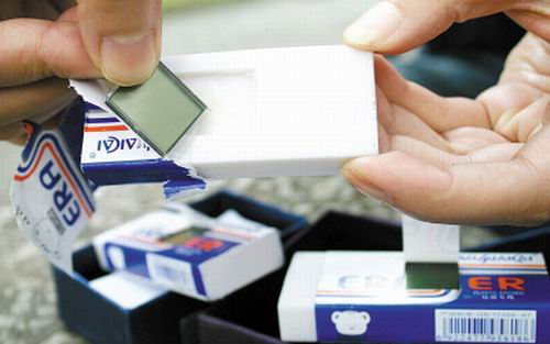 包裝中所謂高科技“橡皮擦”的顯示屏只是兩塊普通玻璃 記者 鐘志兵 攝