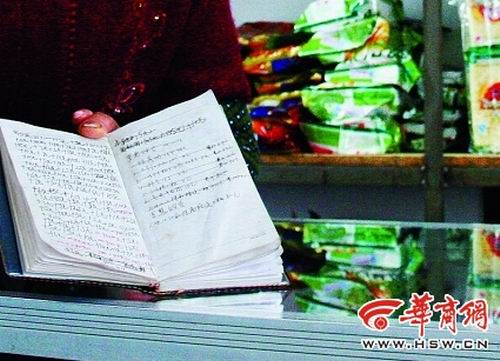 店主仵成翠向記者出示了給學(xué)生記賬的小本子,上面密密麻麻記錄了多名小學(xué)生賒賬的數(shù)額,但沒有具體名目。“我也沒有辦法,學(xué)生們都認(rèn)識我,一下課到店里搶著買東西,主要是小吃和學(xué)習(xí)用品,賬都是他們自己記下的,有的學(xué)生還從我這里借現(xiàn)金。”