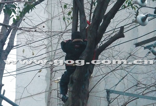 著急的劉女士和丈夫開始了從學校到家附近的“地毯式搜索”,經過近兩小時的尋找,在離家不遠的一棵大樹上,他們看到了兒子。