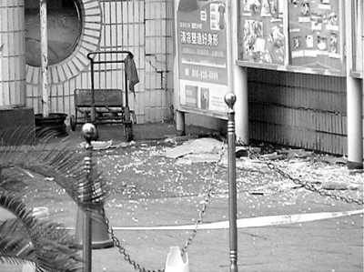 昨日上午,記者趕到現場時,童的夢學校已恢復了正常上課,學生墜樓處附近拉起了警戒線,事發教學樓下的一宣傳欄的雨篷被砸壞,櫥窗玻璃破碎。玻璃碎片散落一地,地上血跡斑斑,警方和閘北區教育局相關領導已在現場了解情況。
