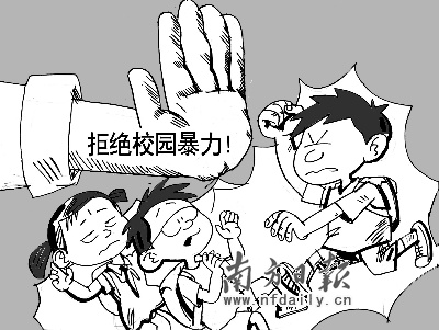據(jù)省少工委公布的《廣東省中小學(xué)生安全意識(shí)調(diào)查報(bào)告》顯示,最近一年,31.8%的中小學(xué)生曾被人踢打或恐嚇?biāo)饕疱X。2007年網(wǎng)上先后傳出東莞、汕頭和廣州中學(xué)校園暴力的視頻;2008年1月16日花都職校女生被同學(xué)圍毆,當(dāng)眾脫褲;7月10日開平中學(xué)女生遭凌辱。這些事件僅是無數(shù)事件中少數(shù)被曝光的,說明我省校園暴力事件有愈演愈烈的趨勢。