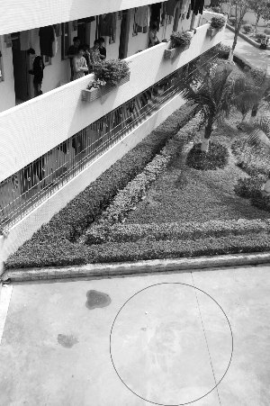 昨日中午12時許,記者趕到事發學校。在事發宿舍樓2號樓南側圍墻位置,仍可看見地面上殘留有一大攤血跡。相關部門工作人員正在宿舍樓內進行調查。據該樓一名學生介紹,他們在凌晨6點多聽到外面很吵,跑出來一看,才知道是有人跳樓了,隨后很快就看到救護車和警車陸續趕到現場,據說跳樓的就是該校學生,已經當場死亡。