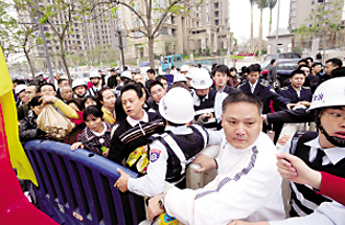 28日凌晨下起了淅瀝小雨,氣溫驟降。部分家長提出,學(xué)校能否以派籌的方式讓排隊的家長先回家休息。學(xué)校沒有及時出面解釋,有家長開始質(zhì)疑學(xué)校有意無意地通過排隊引起轟動,提高學(xué)校知名度。據(jù)該校一位劉姓負(fù)責(zé)人回憶,去年報名當(dāng)日清晨6時沒人來,到了8時也就60多人排隊。“今年我們計劃招12個班,每個班40名學(xué)生。”另一位梁姓負(fù)責(zé)人坦言,盡管學(xué)校做足了準(zhǔn)備工作并提前知會了民警,但還是沒料到“家長們來得這么早”。1日上午10時許,當(dāng)學(xué)校老師走向隊伍中“抱歉地通知家長”新生報名表已經(jīng)發(fā)放完畢時,排在隊尾的家長們開始大聲質(zhì)問學(xué)校并往前擁擠,警方為此增派警力維持秩序。