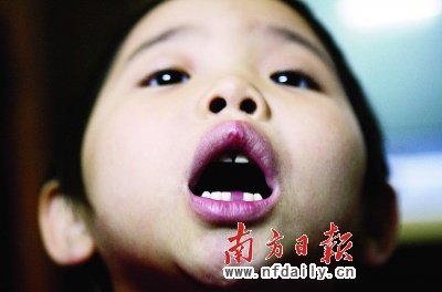 當日傍晚6時許,白英琴將珊珊從幼兒園領回家,“她沒有太多話,回到家我做了她喜歡吃的肉,可她怎么也不張口吃飯。”當白英琴讓珊珊張口,試圖喂她吃飯時,發現珊珊下排門牙不見了(如圖,楊曦攝)。