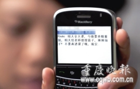 來自西南大學 “手機響不停,太煩了!”昨日,西南大學地理科學學院大一學生王琳(化名)一邊抱怨,一邊把幾個班委的名字添加到手機中的“黑名單”里。近一周,王琳被班委們的群發(fā)短信弄得心煩意亂:聯(lián)絡(luò)感情是好事,但發(fā)短信時,能不能悠著點?