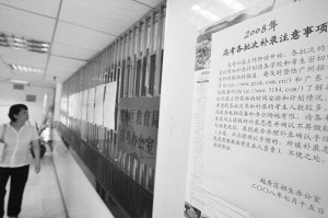 記者在越秀區(qū)招辦現(xiàn)場看到,該辦辦公室走廊兩邊已貼滿了補錄的程序、各高校的補錄招生計劃等供考生參考。不過,從下午2點到4點,前來確認的考生不超過10人,門庭冷清。