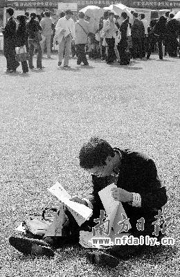 中山大學西方經濟學專業的陳同學對記者說:“兩年畢業本來就容易被認為沒有學到什么東西,又碰上金融危機,現在工作只能盡量找了。”但和去年相比,昨日的研究生專場熱度稍有減少。一些研究生表示,在這場招聘會前,已有一些人通過多種途徑找到了工作。據了解,研究生一般開出的心理價位是5000元左右。
