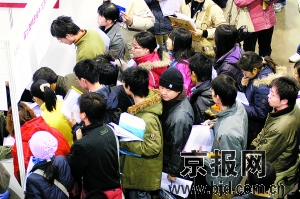 吳婷,北京某高校的英語系高材生,談及近四個月參加招聘會找工作的經歷,用了“不堪回首”這個詞。她將耳邊的一縷長發(fā)撥到腦后:“都說三千煩惱絲,但是找工作,去招聘會更令人煩惱。”
