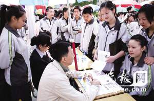 在現(xiàn)場(chǎng)記者還發(fā)現(xiàn)了一個(gè)有趣的現(xiàn)象,同樣的校服往往“成堆”出現(xiàn),甚至一個(gè)攤位前站的十幾個(gè)人穿的都是一色的衣服。專業(yè)相同、關(guān)系較好的同學(xué)一起求職可以理解,但卻是求職時(shí)的一個(gè)禁忌,容易給用人單位留下獨(dú)立性不強(qiáng)的感覺(jué)。不過(guò)昨天會(huì)場(chǎng)的企業(yè)卻對(duì)此不太在意,“畢竟招聘會(huì)特殊,崗位需求也較多,同類學(xué)生在一起有個(gè)比較,作為未來(lái)同事特別是實(shí)習(xí)階段,相互間比較熟悉也沒(méi)壞處。”一家酒店負(fù)責(zé)人這樣解釋。