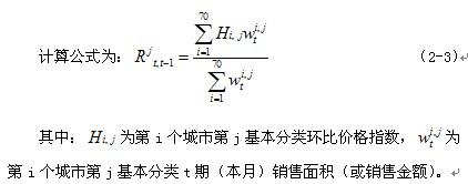 ⑵70個大中城市基本分類以上類別價格指數(shù)的計算方法同各城市基本分類以上類別價格指數(shù)。