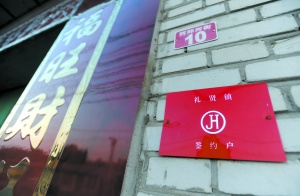 村民楊大海(化名)瞅著自家門口的紅鐵牌發愁,鐵牌上印著“禮賢鎮簽約戶”。