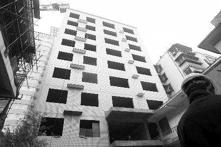 在現(xiàn)場,焦支隊長指著該樓周邊居民樓對記者說,這個樓距西邊華山公寓不足5米,與南邊家屬樓不足15米,與東北角正在施工的樓僅兩米多。為保證居民安全,6層以上開始實施人工拆除,6層以下才能用機械拆除,預計6層以上人工拆除需兩天多時間。
