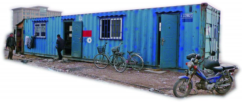 “你看到的只是外面,里面更好。”該工地一位姓馮的負責人自豪地說。果然如馮先生所言,房間內部別有洞天。四周墻壁不但加裝了保溫層,還進行了裝飾。上有吊頂吊燈,下鋪復合木地板,窗戶上包了窗套,墻上安了插座和電箱,空氣開關的電閘有模有樣,桌上還放著電腦和打印機等辦公設備。“怎么樣?還不錯吧?在工地上住這樣的房子算是一種奢侈了。這些電源插座都不是擺設,用暖氣和空調都沒問題。”馮先生介紹說。