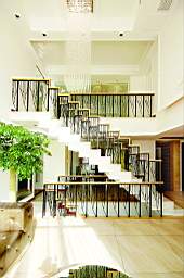 抽象的用形是空間中個性的表現(xiàn),形的取材來自于自然的樹的形狀,同樣是加以抽象與模糊,便成了主題樓梯的扶手。