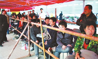 記者詢問幾位排隊的農民工:“你們排隊拿號是自己買房嗎?”他們說,是受買房人之托排隊拿號的。排隊—天—夜可以拿到300元的辛苦費。由于要熬—通宵,所以都穿上了厚厚的夾衣。( 記者梁超)