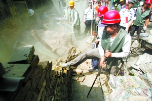 上午10時(shí)許,幫拆違法建設(shè)的活動正式開始。李廣民說,就是這67處今天計(jì)劃拆除的違法建設(shè),也有居民在昨天開始進(jìn)行自拆了,加上今天早晨進(jìn)行自拆的,占了總數(shù)的70%左右,對于那些拒不自拆或是無力自拆的居民,東鐵營街道請了專業(yè)拆除公司,幫助他們拆除。