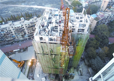 昨日,在省供銷倉儲運輸總公司違建樓拆樓現場,施工人員已經從20層樓拆到第14樓,據稱,原計劃28日完成拆樓工程預計可以提前。省供銷倉儲運輸總公司12層樓違建至20層樓的“樓高高事件”引起社會廣泛關注,從10月27日開始拆樓,到11月6日用9天時間才完全拆掉一層半,主要原因是樓層較高難于施工,現澆的水泥樓板和隔墻又十分堅硬,工人們用錘子一點點鑿進度很慢。11月8日,有專業拆樓經驗的利固公司進駐,30多名工人用切割機等設備只用一天時間可以將一層樓的樓板全部切割完,大大提高拆樓的效率。