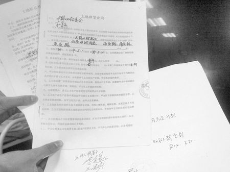 謝好子說,在今年2月的一天,他接到了鎮(zhèn)長郭玉瑞的電話,要求帶上村委會的公章到鎮(zhèn)政府。到了鎮(zhèn)政府,郭玉瑞直接拿出一份土地轉(zhuǎn)讓補償協(xié)議,要求將大路口村的70畝土地轉(zhuǎn)讓給洛陽國裕房地產(chǎn)開發(fā)有限公司,上面蓋有該公司的合同專用章,代表人簽字處已經(jīng)寫上了陳躍通的名字。這份合同要求將大路口村的70畝土地以每畝25萬元的價格轉(zhuǎn)讓給開發(fā)商。謝好子提出25萬元的價格太低,且沒有經(jīng)過村民委員會的同意。后經(jīng)過簡單的協(xié)商,郭玉瑞提出將每畝土地的價格上升到30萬元,并直接在合同上做了改動。目前,村里也沒有見到過這份合同簽訂后對方的任何款項。