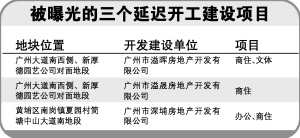廣州市國土房管局首次在其網站上曝光了三個延遲開工建設的項目,并發公函催促其在限期前動工開發建設。對逾期仍未動工者,市國土房管局將依法進行處置。