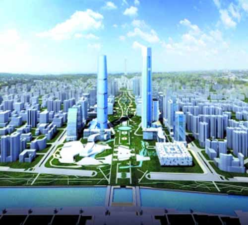 據了解,去年,東塔項目招標出讓,有關部門對其東家設置了很高的門檻。最終,新世界地產以起拍樓面底價每平方米2860元、比西塔高出4元的價格拿下這一新地標。目前,東塔初步設計方案出爐,其外觀將為方形,與西塔的圓形相呼應。