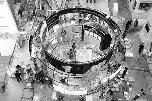 記者在明天開幕的國貿春展現場看到,今年開發商在展位包裝上下了血本,特裝不僅巨大,而且所用材料幾乎都是新的。