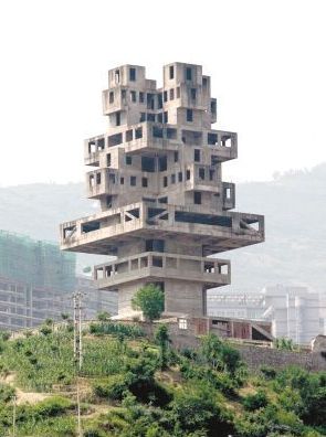 爆破前的“華字塔”成為爛尾樓 圖片來源:重慶晚報