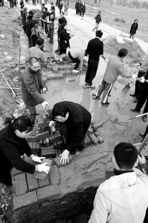 昨日下午,大興區(qū)舊宮親親我家小區(qū)內(nèi),上百名業(yè)主在小區(qū)東南門砌墻、挖路,以此向開(kāi)發(fā)商抗議。