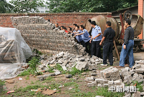 中新網廣安6月2日電(廖小兵 羅義明 張培成)2日上午9時許,隨著“轟”的一聲巨響,位于四川省廣安市廣安區北辰辦事處環城北路8號福泰居的一堵圍墻砃然倒塌,當地有關部門聯合執法強制拆除一非法圈地圍墻,群眾拍手稱快。
