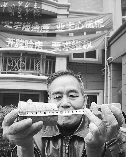 “結果出來就是沒有一個洞是合格的,當我們拿著這個跟開發商說的時候,他們還說樓是合格的,這只不過是瑕疵而已。”徐建興說。