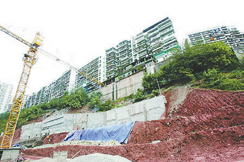一年前,施工隊陸陸續(xù)續(xù)地來到這里,將這里的常青樹一一砍倒。接著,施工隊開來推土機,鏟平了小土坡。他們用了一天的時間,就在這里搭起了一整片工棚。居民們聽說,這里將建起一幢高達16層的樓房,一個叫重慶市運發(fā)房地產(chǎn)開發(fā)有限公司的單位則是樓盤的承建者。