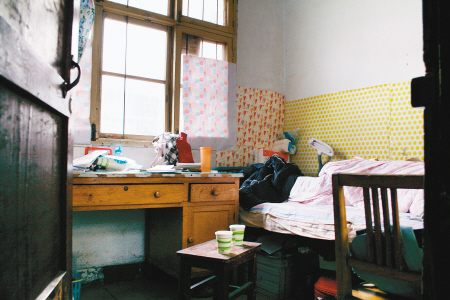 爬上一家民房狹窄而昏暗的樓梯,就是馬潔居住的地方。這間不足10平方米的屋子里,靠北的窗戶下放著一張上世紀(jì)80年代曾很流行的“一頭沉”,桌面上擺著一本《心理咨詢》。馬潔說,這兩天她正在準(zhǔn)備一個(gè)考試。這張桌子兼做書桌、飯桌和辦公桌。東面的單人床占據(jù)了整間房子的三分之一,桌子的另一邊,放著一張小茶幾,堆滿了洗滌用具和餐具,兩者之間并無清楚界限。床頭的墻上貼著一張寫得整整齊齊的菜單,這讓記者有些驚訝。“鍋在床底下”,她自嘲地說,“電飯鍋、電磁爐,是我花了近500塊錢購置的。”