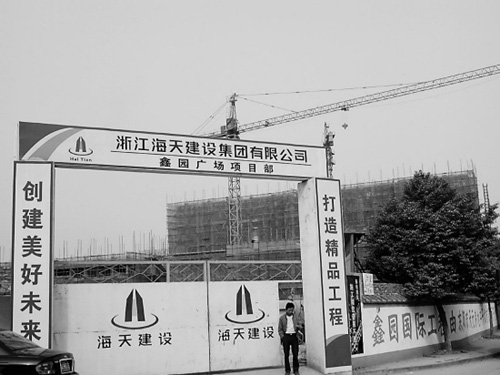 11月14日,記者站在這幢還沒蓋到一半的大樓前。這個坐落在義烏與東陽交界處的樓盤,叫“鑫源國際”。