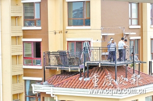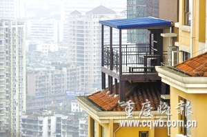 昨天中午,記者在該小區(qū)看到,“最牛吊腳樓”所在的5棟樓下拉著警戒線,幾個業(yè)主仰頭張望,說:“拆了我們就放心了。”在32樓該業(yè)主屋內(nèi),五六個工人正忙著鋸木頭柱子,藍色棚頂已拆除,雕花鐵藝欄桿和木頭桌椅也已移走。現(xiàn)場工人告訴記者,他們的拆除工作是從前天下午開始的。由于“吊腳樓”面積近20平方米,木頭柱子還用水泥焊住,“拆起來比修起來還麻煩。”