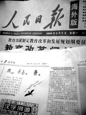 《人民日報》海外版廣告部的工作人員告訴記者,海外版面向全世界80多個國家發行,城管部門刊登《強制拆除決定書送達公告》是第一次。(記者 王彬)